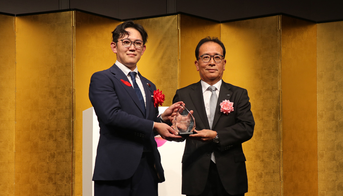 初日の10月14日(火)に、パレスホテル東京(東京都千代田区)で表彰式が開催され、総務大臣政務官 、川崎 ひでと氏より、当社 代表取締役 社長執行役員 CEO 沖津 雅浩が賞状と楯をいただきました。