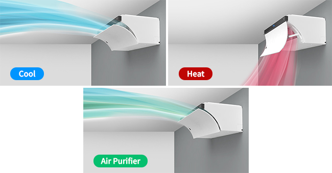 クールモード・ヒートモード・空気清浄機モードによって異なる3つのエアフロ―モードを搭載し、年間を通じて快適な環境を提供します。