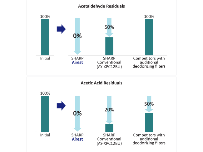 アセトアルデヒドと酢酸に関する一般的エアコンとの比較