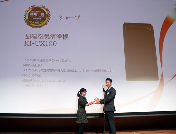 ▲(左から)空気清浄機部門 金賞 プラズマクラスター加湿空気清浄機<KI-UX100>、