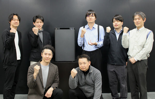 (下段左から)Smart Appliances & Solutions事業本部 プラズマクラスター・ヘルスケア事業部 国内PCI商品企画部 課長 松村 勇樹、同事業部 PCI第一技術部 係長 今関 謙一、技師 田中 克治、技師 山下 光義、技師 酒井 陽介、