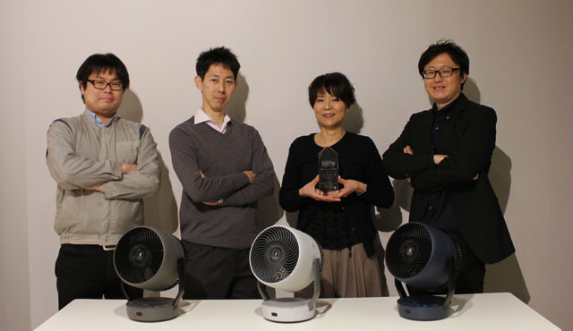 (左から)キッチン家電部門銀賞、空気清浄機部門金賞、扇風機・サーキュレーター部門金賞、