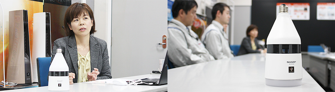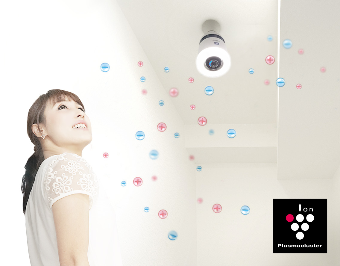 After careful consideration, Sharp came up with the idea of using the light socket in the bathroom ceiling. Sharp's development team also took into account that an ion generator installed to the ceiling could generate a high concentration of Plasmacluster Ions from overhead. This led Sharp to undertake the challenge of developing a ceiling-installed Plasmacluster Ion generator.