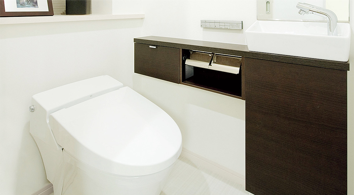 Typically, bathrooms are vacant for much longer periods of time than they are in use. To effectively utilize the time when bathrooms are not in use, a motion sensor was installed that automatically turns on the generator's LED light when anyone enters. When the bathroom is empty, the light turns off, and Plasmacluster Ions are generated in maximum mode. This way, we thought it would actually be better able to notice how comfortable the air has changed. And of course, an LED that automatically lights up is much more convenient than conventional bathroom lighting.