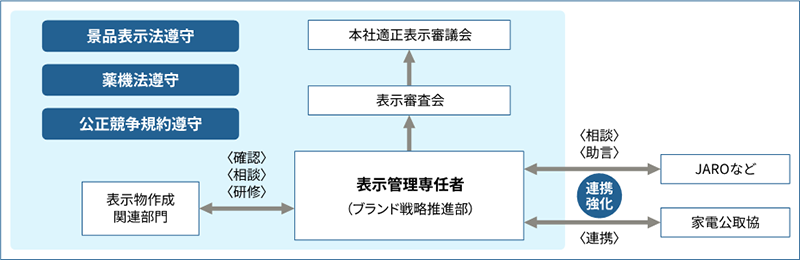 日本国内の表示に関しては、社内規程により以下のとおり表示に対する基本的な考え方や、適正表示確認体制などを定めて運用を行っています。