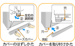 万一の際に、容易に移動しないように、左右の調節脚で水平に固定できるように調節してください。