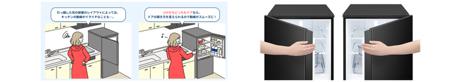 1.設置場所に応じてドアの開閉方向を変更できる「つけかえどっちもドア」を搭載