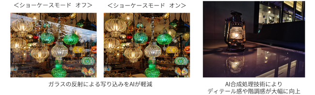 「AQUOS sense」シリーズで初めて、料理やテキストの撮影時に写り込んだ影をAIが自動で消去する機能を搭載。新たに、ガラスや水槽などの反射も軽減する「ショーケースモード」も搭載しました。写り込みを気にせず好きな構図で撮影でき、後から編集する手間も不要です。さらに、テキストは影除去と同時に台形に歪んだ形の補正も可能になり、より読みやすくなりました。