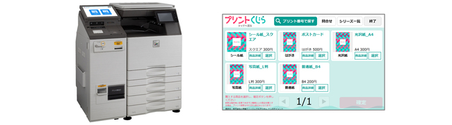 左:マルチコピー機<MX-3631DS(※1)>、右:「プリントくじら」操作パネル部(イメージ)