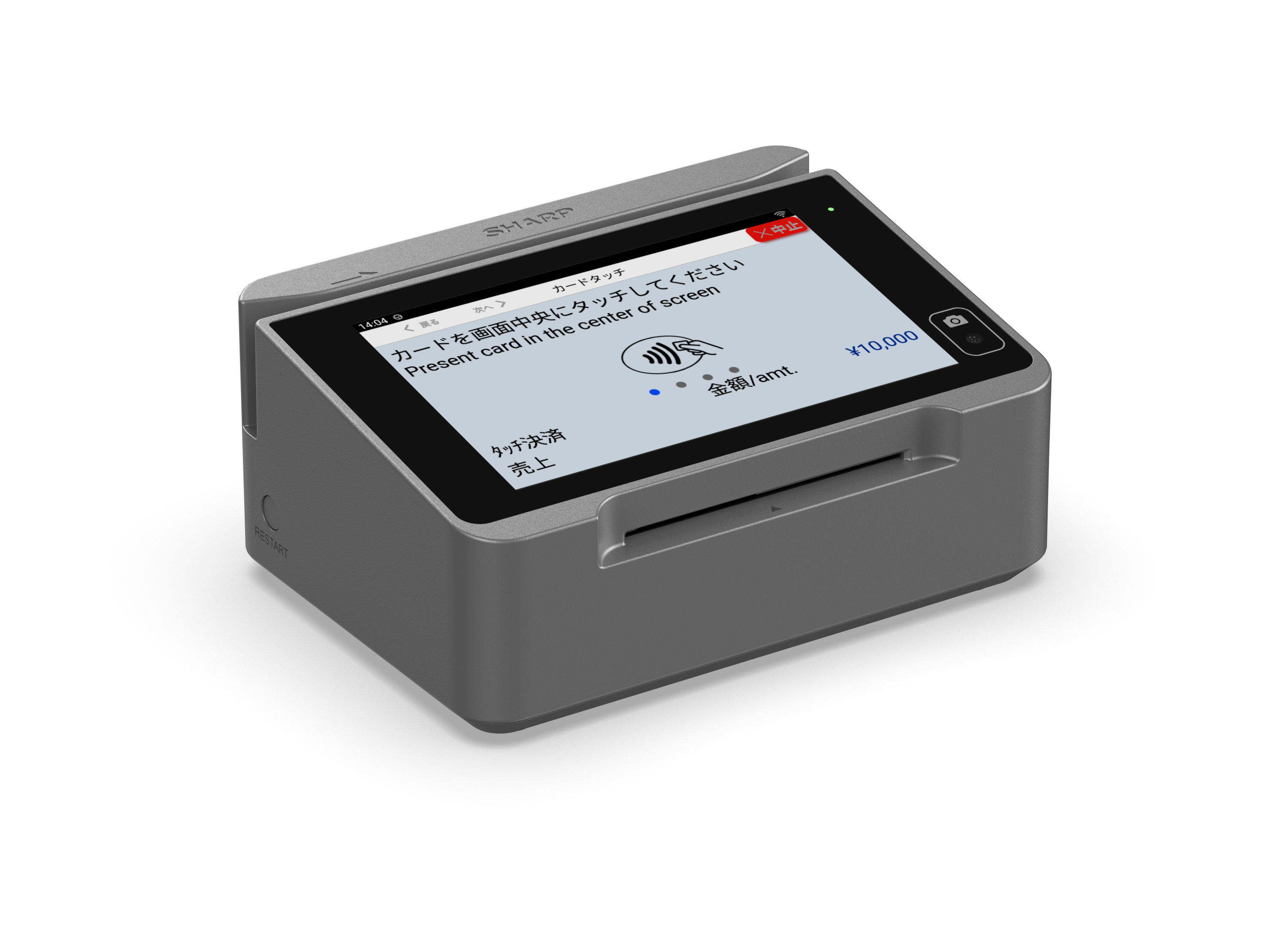 NTTデータと共同で開発したキャッシュレス決済端末です。クレジットカードや電子マネー、QRコード支払いなど、さまざまな決済手段に対応しています(※1)。今回、セルフレジを中心とした省人化レジの運用に適した新モデルを初出展。スマートフォン「AQUOS」の開発で培った通信技術と高い処理性能を活用し、快適な決済処理を実現します。