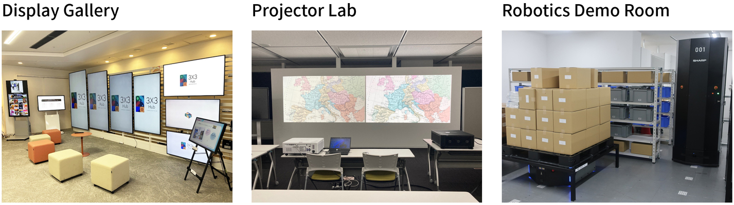 「3X3 Hub-東京」は、「DX」「CX」「GX」の“3つのX”を実現するシャープのソリューションを、「Smart Office」「Smart Retail」「Smart Logistics/Factory」の“3つの業務領域”で提案する体験型のショールームです。